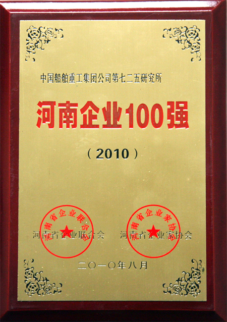 七二五所被評(píng)為河南省企業(yè)百?gòu)?qiáng),2010年排名63位
